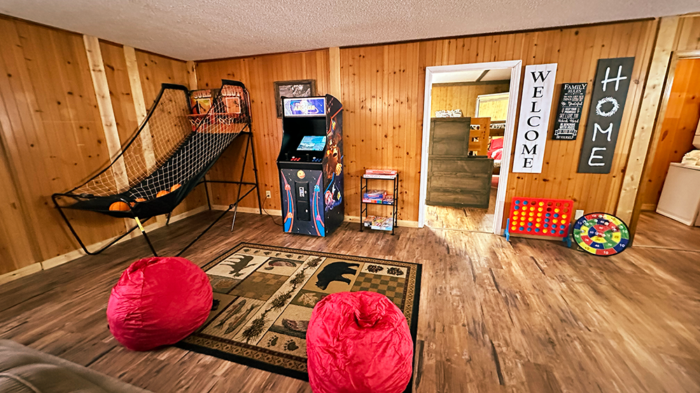 - Bedroom 3: Queen bed + Twin-over-Queen bunk + Jumbo Connect 4 + TV