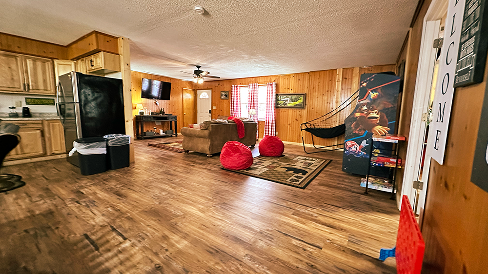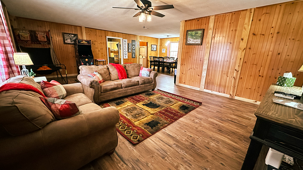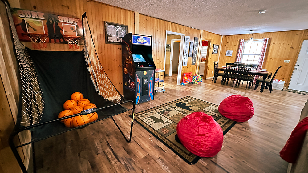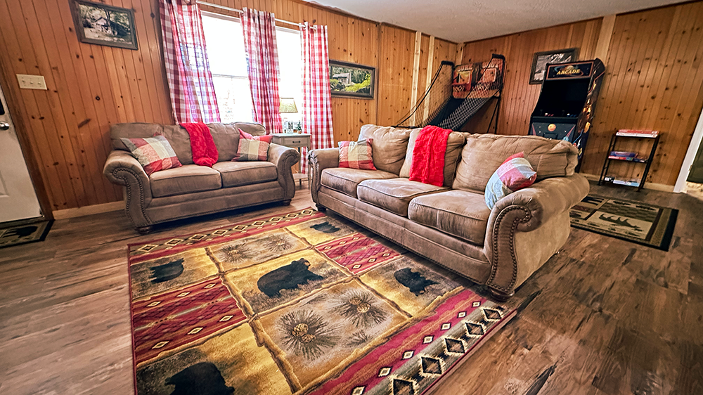 When you need room for everyone; grandparents, kids, cousins, and yes, the family dog, Sleepy Bear Ranch delivers. This spacious 3-bedroom Sevierville cabin sleeps up to 11 guests comfortably, with 3 full bathrooms (no morning bottlenecks!), arcade entertainment, and a hot tub for unwinding after a day exploring the Smokies. Just 15 minutes from both Dollywood and Pigeon Forge, and tucked among the trees for peaceful evenings, this is your stress-free home base that was made for large gatherings.
