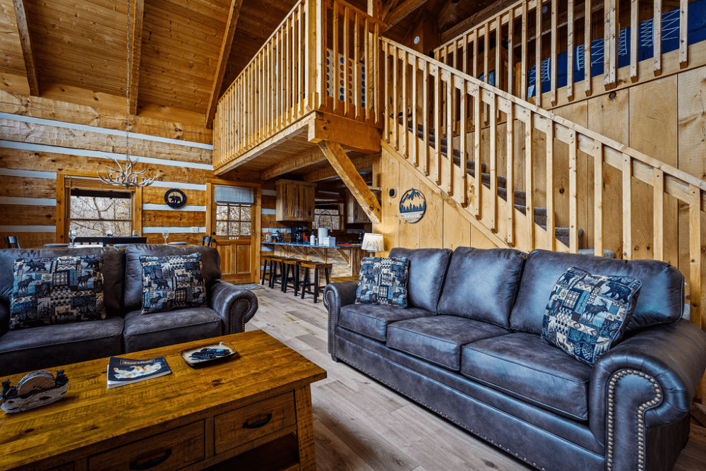 Blissful Tranquility is a pet-friendly cabin rental near Dollywood in Pigeon Forge, TN. This Smoky Mountain retreat features a private hot tub, arcade games, and streamside decks. Ideal for families, couples, and travelers with pets looking for a comfortable, entertainment-filled stay just minutes from Dollywood and the Great Smoky Mountains National Park.