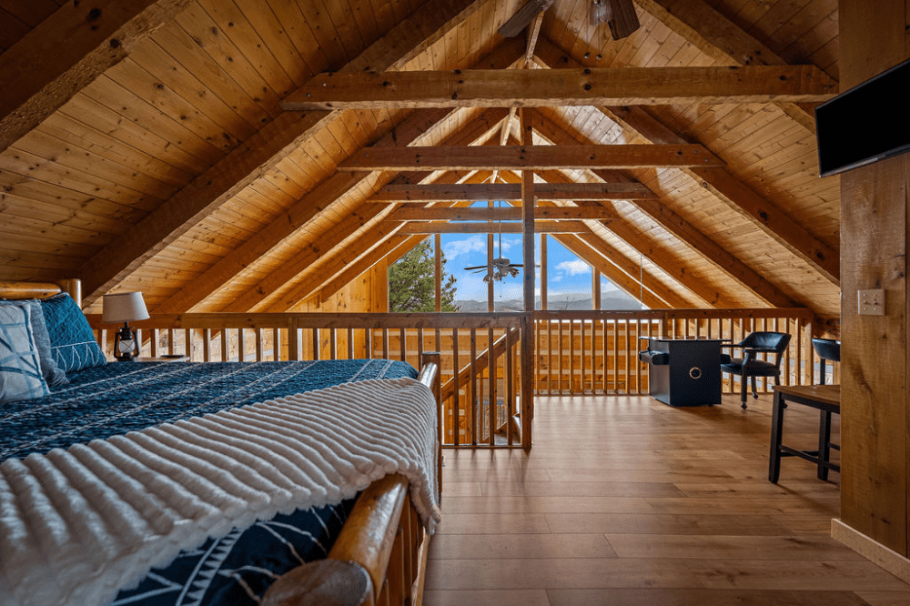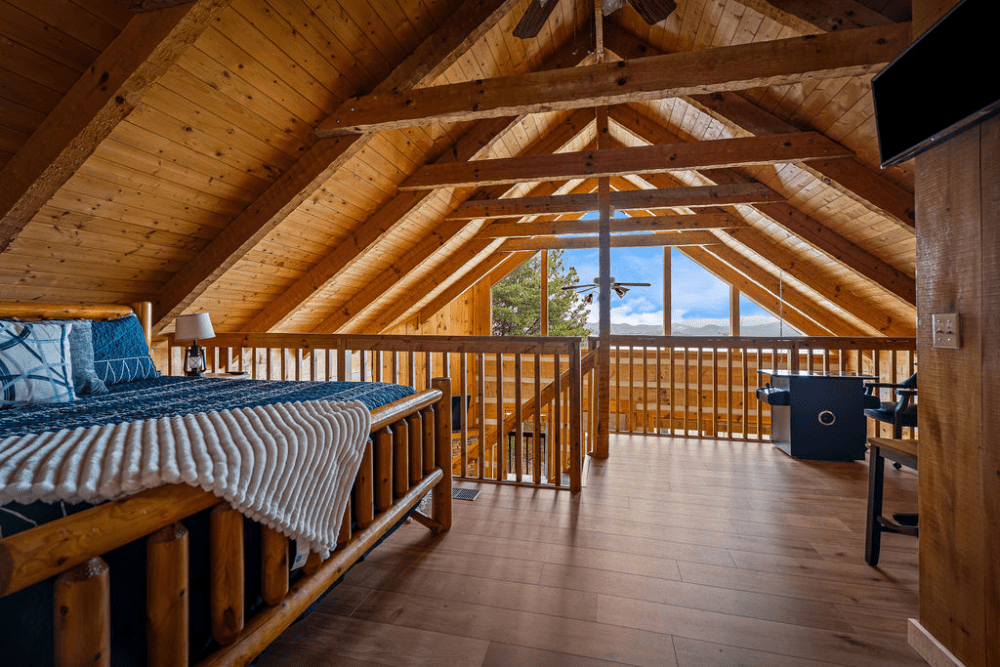 The upstairs loft isn’t just for sleeping—it’s your family fun headquarters: